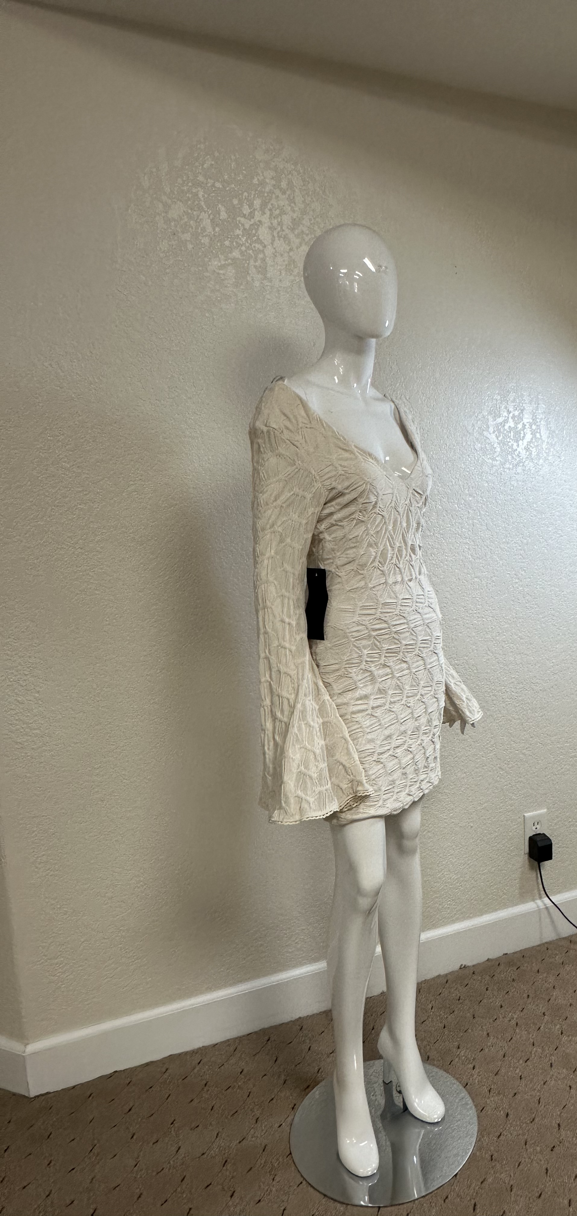 BeBe Cream textured Bell Sleeve Body Dress w/tags