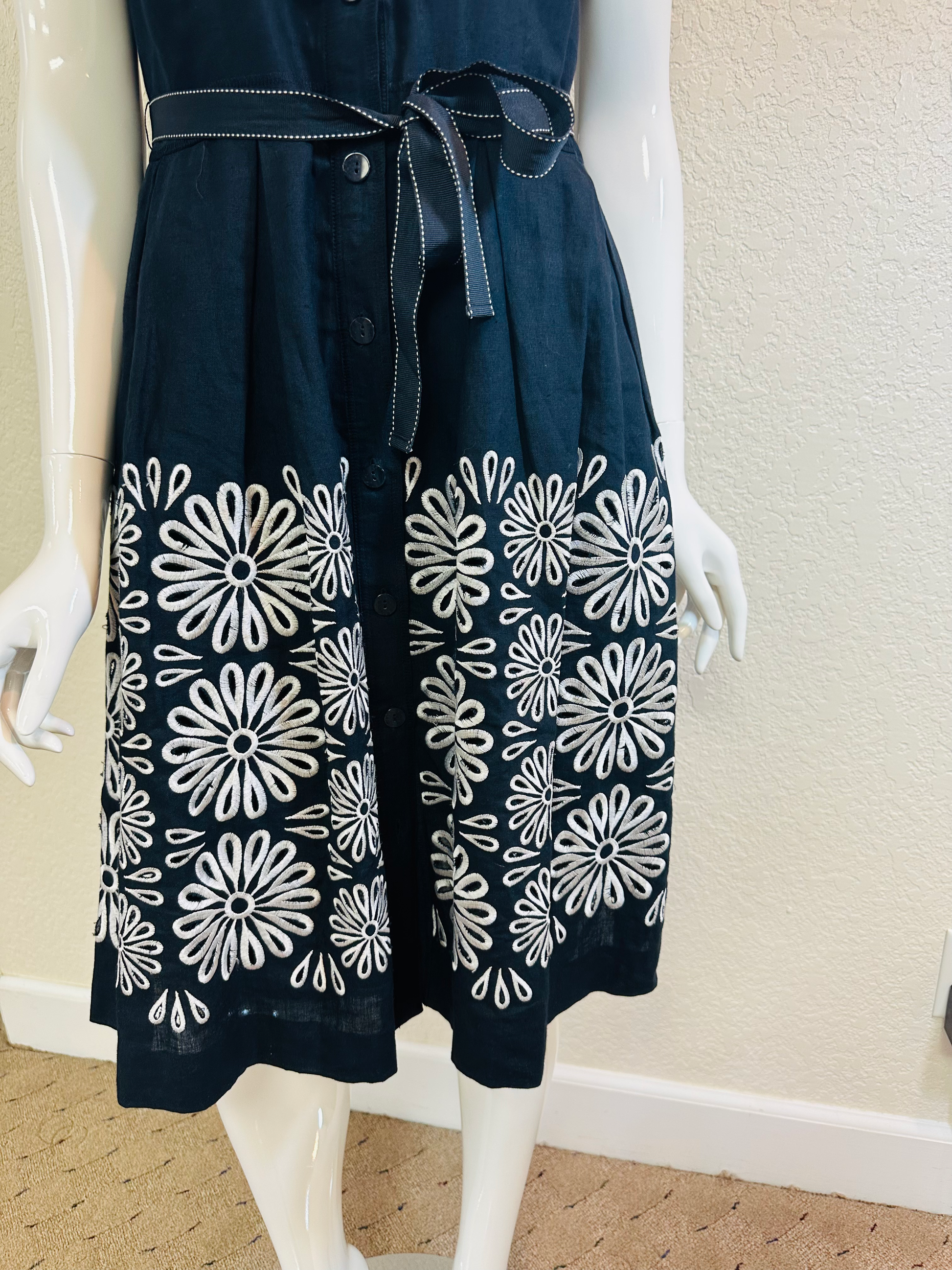 - Blue?White Button Down Dress with Belt